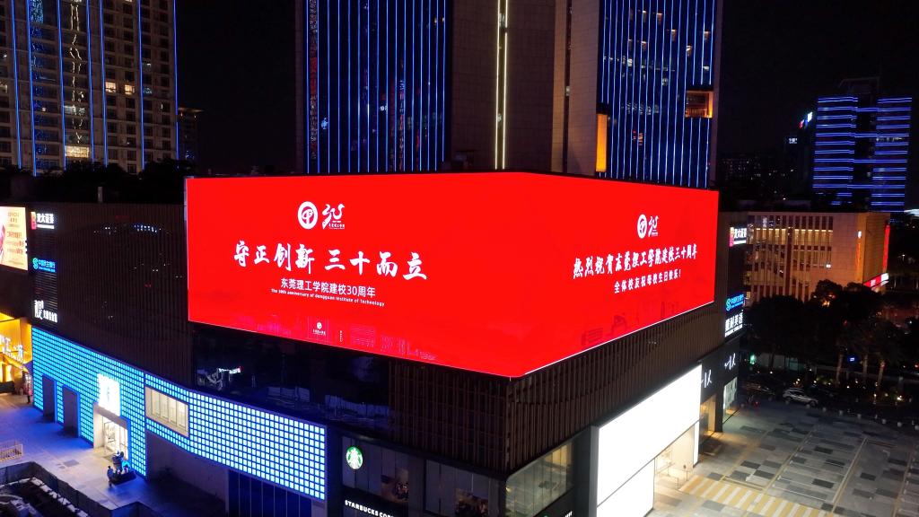 在莞工30岁生日之际,在广大校友支持下,学校于4月29日和30日晚在东莞地标集体亮灯,向社会各界宣传“知行合一、立德树人”育人理念,“爱国奋斗、追求卓越”莞工精神。同时,本次亮灯以直播形式邀请师生校友和社会各界线上观看,观看人次达1.8万,点赞破10万。当晚,璀璨灯光闪耀东莞夜空。“知行合一·立德树人,爱国奋斗·追求卓越”“风华正茂,踔厉奋发,建设新型高水平理工科大学示范校!”“热烈祝贺东莞理工学院建校三十...