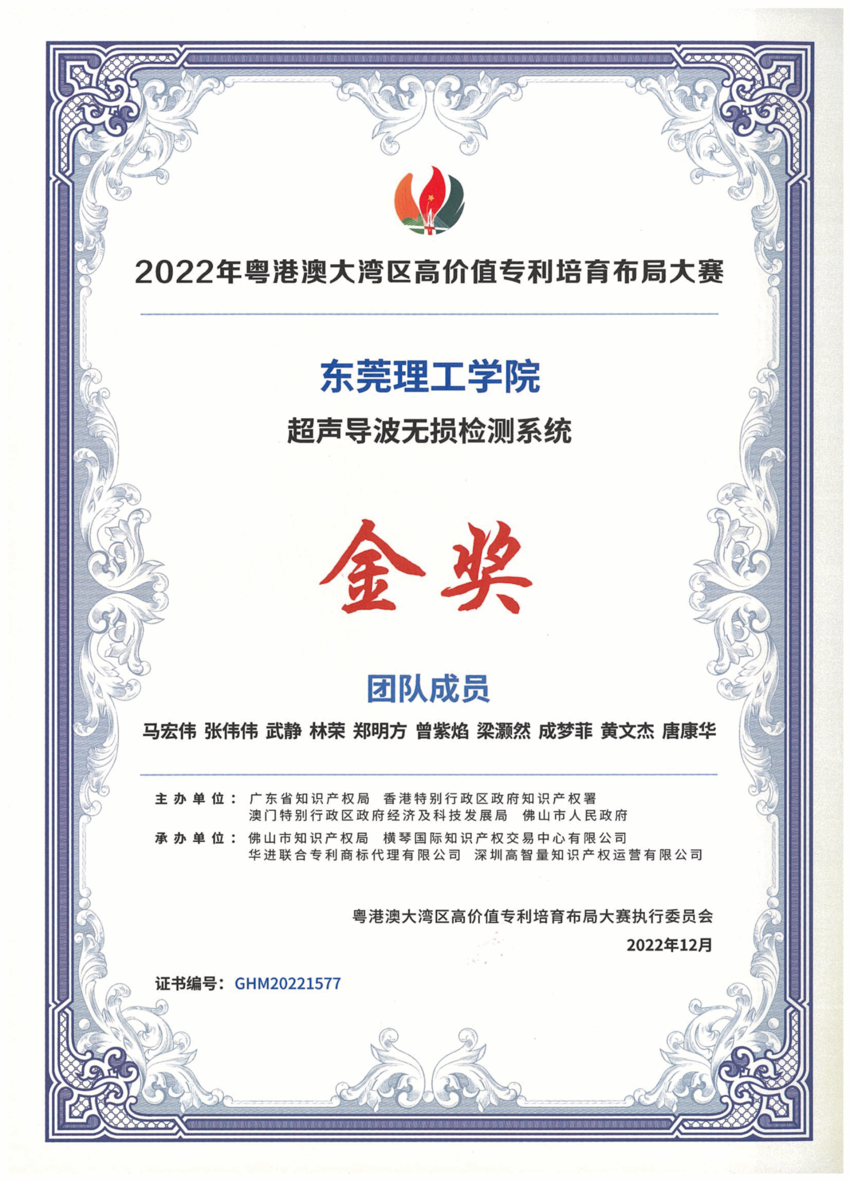 近日,2022年粤港澳大湾区高价值专利培育布局大赛(以下简称“湾高赛”)公布决赛评审结果。我校校长马宏伟教授主持的项目“超声导波无损检测系统”荣获金奖,是金奖获得者中唯一来自高校单位的项目,也是我校参加湾高赛以来首次获得金奖。“湾高赛”由广东省知识产权局会同香港特别行政区政府知识产权署、澳门特别行政区政府经济及科技发展局,以及佛山市人民政府联合主办。围绕粤港澳大湾区高质量发展、国际科技创新中心和知...