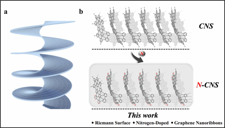 学校材料科学与工程学院陈木青特聘研究员,联合中国科学技术大学杜平武教授以及浙江工业大学朱艺涵教授,研制出首个具有氮掺杂黎曼曲面的弯曲碳纳米螺线管材料,填补了氮杂原子掺杂弯曲碳螺旋材料领域的空白。近日,该研究成果以东莞理工学院材料科学与工程学院为第一单位发表在自然子刊《Nature Communications》。图1. (a) 碳纳米螺线管示意图; (b) π-拓展的N掺杂的纳米碳螺线管设计图分子基碳材料因其独特的几何形状,具备...