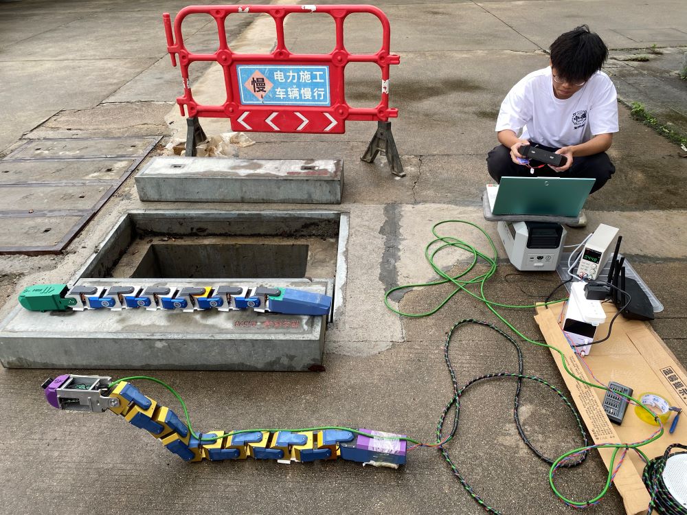科技赋能新质生产力。在电力运维领域,机械工程学院针对新丰供电局电缆检测难题,依托东莞理工学院的广东省城市生命线工程智慧防灾与应急技术重点实验室、广东省机器人重点实验室、与新丰供电局共建的“电力智能运维工具研发实验室”等平台,并带动3名研究生以及30余名本科生参与核心技术研发,研制出国内首款针对150mm直径电缆管道的仿生智能检测设备样机——“管道检测智能机器蛇”。该设备实现管内情况实时查看、柔性仿生结构、轻量化与易用性、全场景赋能四大技术突破。2024年为新丰供电局研发的单相电能表通讯模块拆卸工具已交付 1000 套,效率较传统方式提升 2.5 倍,经测算可为韶关地区全面推广后节省人力成本约144万元,成为电力行业降本增效的 "利器"。