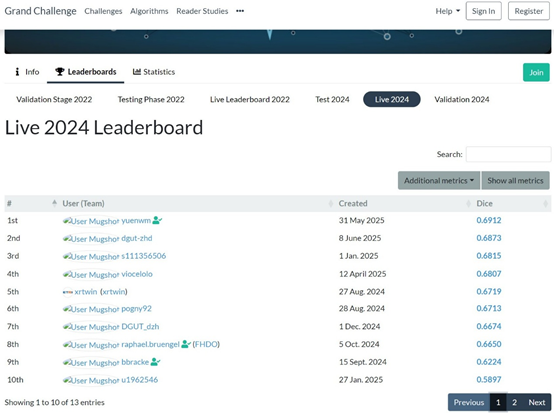 5月31日,我校杨振宁创新班(简称杨班)2022级本科生袁伟珉同学提交的糖尿病足溃疡图像自动分割系统,经竞赛主办方独立测试,以0.6912的Dice系数(该系数在医学影像分析领域用于评估病变区域预测的准确性),在糖尿病足溃疡国际挑战赛DFUC实时排行榜中名列第一。该竞赛旨在促进将人工智能技术应用到糖尿病足溃疡图像的自动分割中。