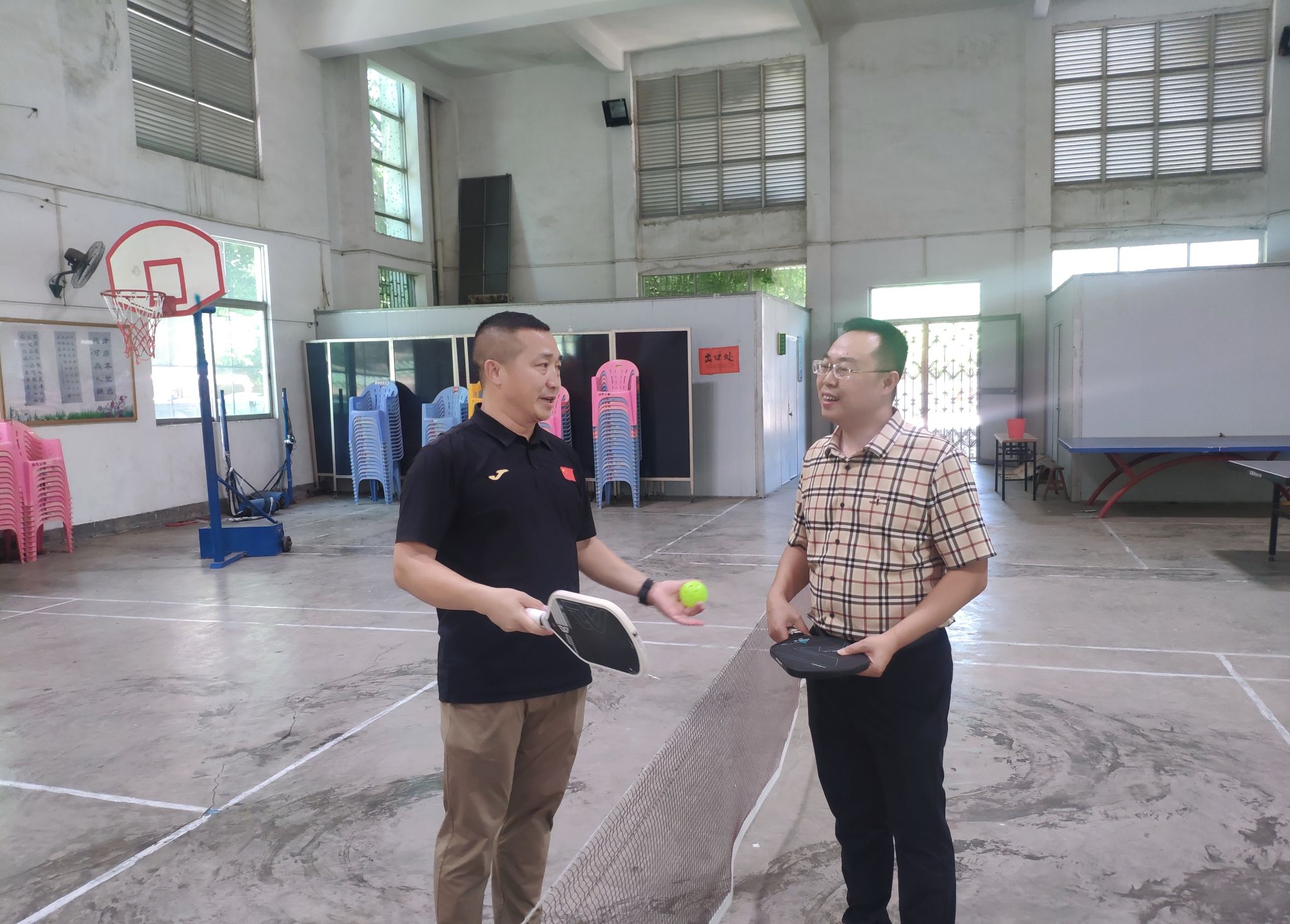苏敷志、潘荣远还到揭东区文广旅体局、揭东一初及揭东四小调研,了解地方所需。在揭东区文广旅体局,该局负责人介绍了揭东区体育事业发展情况,双方探讨了在揭东体校共建“东莞理工学院教学实践基地”、开展社会体育指导员培训、推广匹克球运动项目等事项,助力揭东体育事业高质量发展。在揭东一初及揭东四小,苏敷志、潘荣远耐心细致地讲解匹克球运动的规则、技巧,并进行现场示范和指导,学校老师也积极参与互动,双方表示将共同推动该项运动在揭东区的推广,促进全民健身,促进基础教育体育学科优质均衡发展。