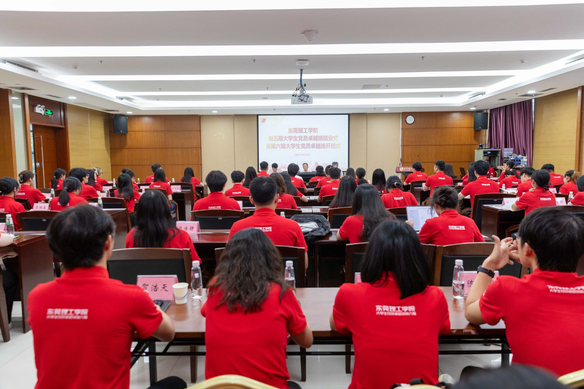 为扎实推进学校学生党建工作高质量发展,加强“党建育人”新模式探索实践,着力培养政治坚定、本领过硬、勇于担当的新时代大学生党员队伍,2025年6月30日,第五期大学生党员卓越班结业式暨第六期大学生党员卓越班开班式在松山湖校区学术会议中心306会议室举行。校党委副书记李忠红,校党委委员、组织统战部部长彭晓波共同见证这场"卓越接力"。