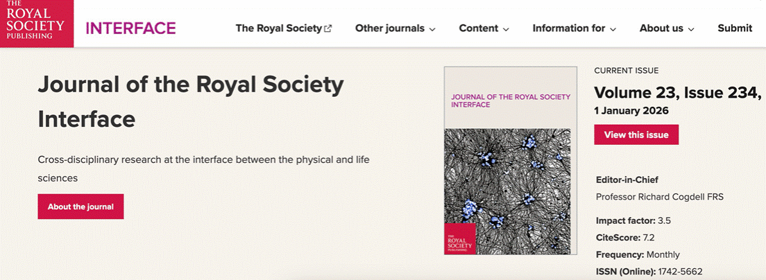 近日,机械工程学院宋加雷博士受聘为国际知名交叉学科期刊Journal of the Royal Society Interface(中文译名《界面》)副主编,任期三年。《界面》是英国皇家学会出版社旗下八本核心期刊之一,在JCR分区中属于Q1区,在中科院期刊分区大类中列为综合性期刊2区。该刊长期致力于发表数学、物理学、工程学等在生物与医学领域的应用研究成果,并关注生命科学中对物理科学具有启示意义的重要发现,是国际上少数专注推动此类前沿交叉学科发展的权威期刊之一。期刊年发文量约200篇,其中中国学者文章占比约7%。根据近年发表记录与学术影响力统计,哈佛大学、麻省理工学院、牛津大学、剑桥大学与斯坦福大学位列该刊活跃机构前五。清华大学是国内高校中发文最多的机构。