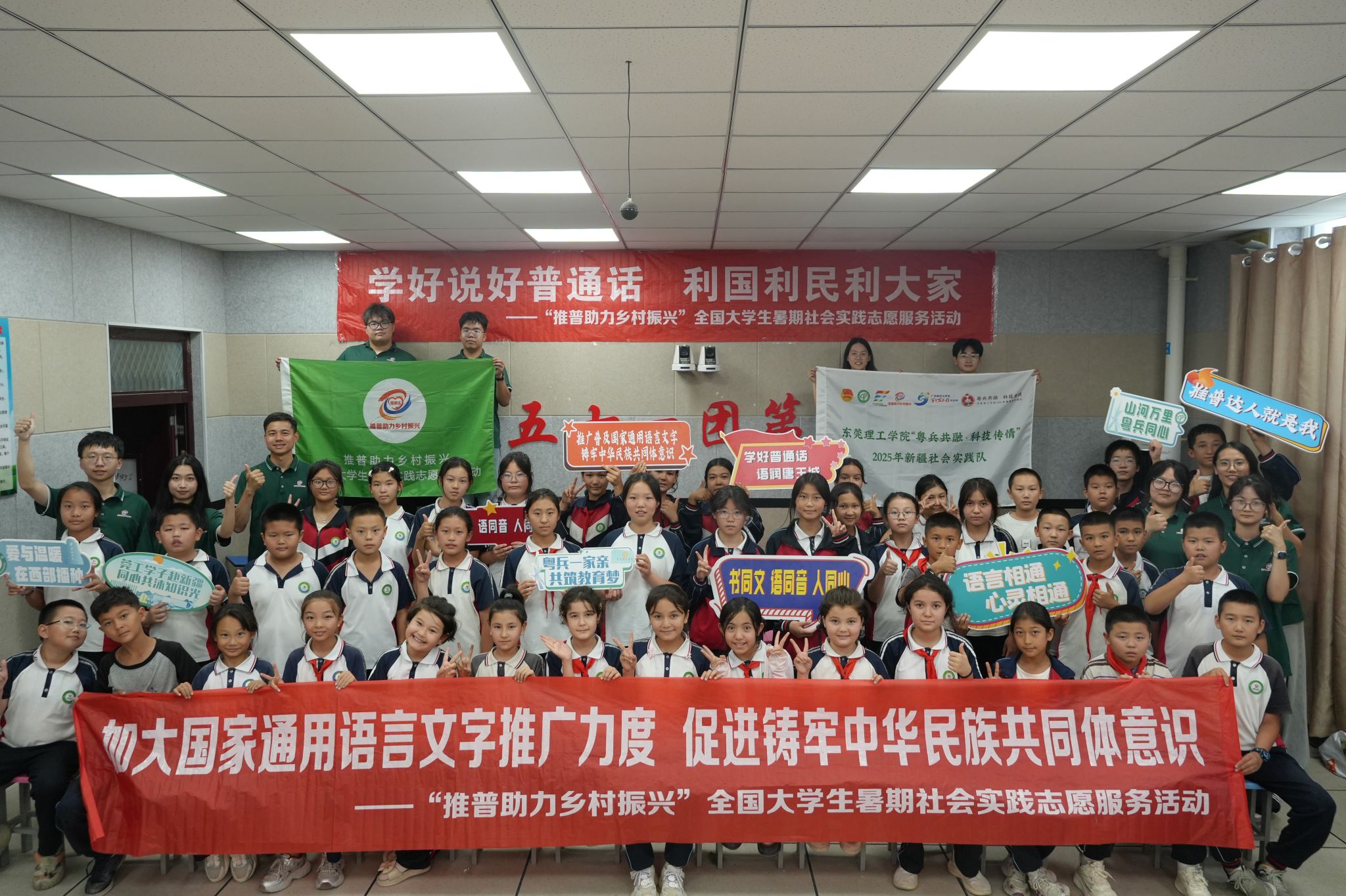2025年暑期,莞工派出了一支特别的队伍——“粤兵共融·科技传情”社会实践队。同学们以“推普助力乡村振兴”为核心,融合科技赋能与文化传承,在图木舒克市完成了为期两周的志愿服务。