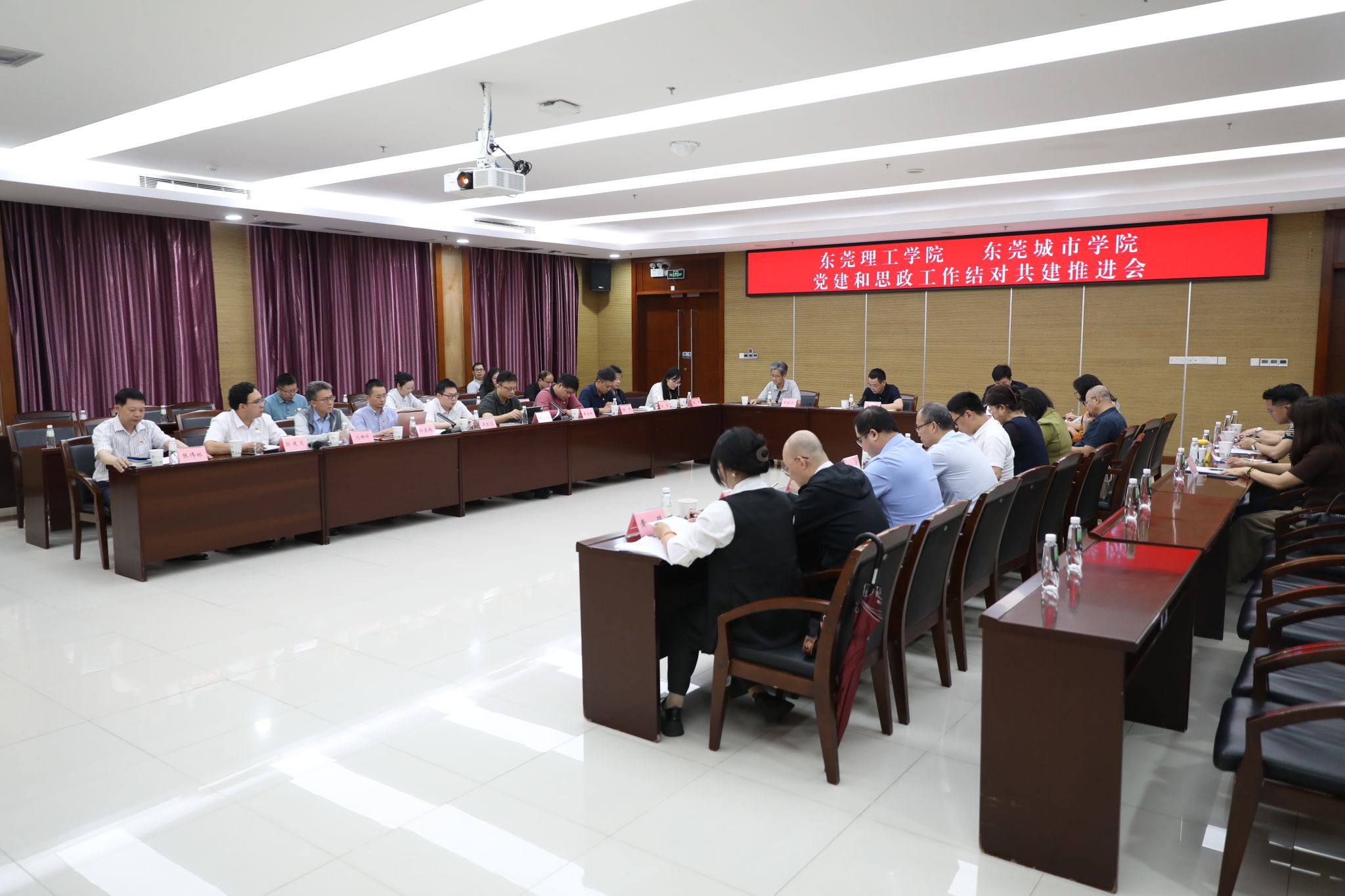 4月3日,东莞理工学院与东莞城市学院党建和思想政治工作结对共建2026年第一次推进会在学术会议中心召开。校党委委员、副校长徐勇军,东莞城市学院党委书记魏东初出席会议,两校结对共建领导小组,党的建设、思想政治、引领发展三个工作团队相关负责人,有关结对共建部门单位负责人参加会议。会议由校党委委员、组织统战部部长彭晓波主持。