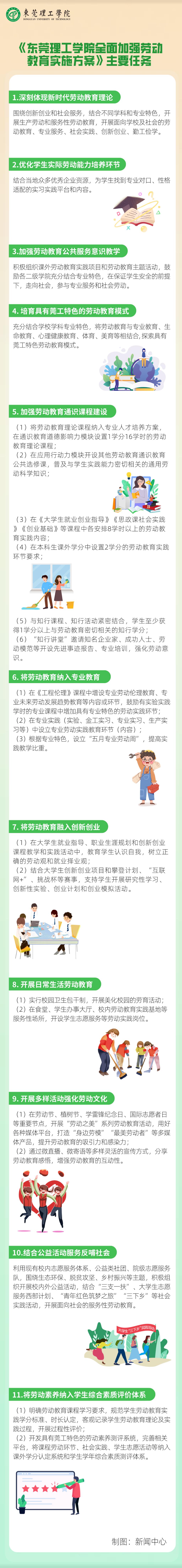 为坚持立德树人根本任务,将劳动教育融入全员全过程全方位育人格局,弘扬劳动精神,学校结合通识教育改革实际,制定了《东莞理工学院全面加强劳动教育实施方案》,想知道以后同学们要如何参与劳动教育?快通过一图看懂的方式了解一下!