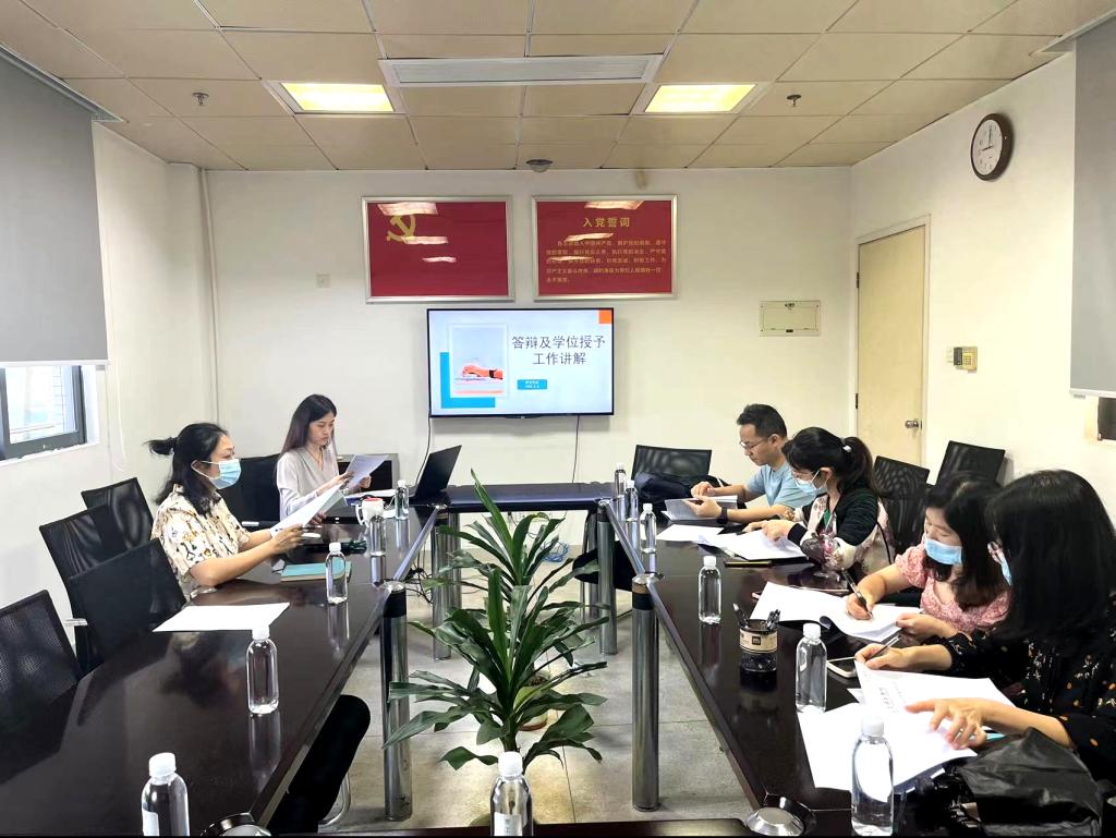 今年新学期伊始,由于东莞新冠疫情的暴发,研究生延期返校,学位授予工作受到一定的影响。在此背景下,为保障学位授予工作顺利开展,研究生处和学位点工作人员不忘初心,齐心协力,共同为首届硕士研究生线下答辩会提供多维度保障。提前部署,上线研究生教育管理系统,实现学位授予各环节线上办理;多次召开专项会议对答辩与学位授予工作的具体安排、要求进行讲解和解答;研究生处、学位点和导师等多方护航,全力解决研究生在学位论文撰写与送审中遇到的问题;赴学位点组织答辩工作动员会,协同各学位点做好疫情防控工作,严格按照防控要求安排校外专家入校,为研究生答辩工作顺利开展奠定良好的基础。