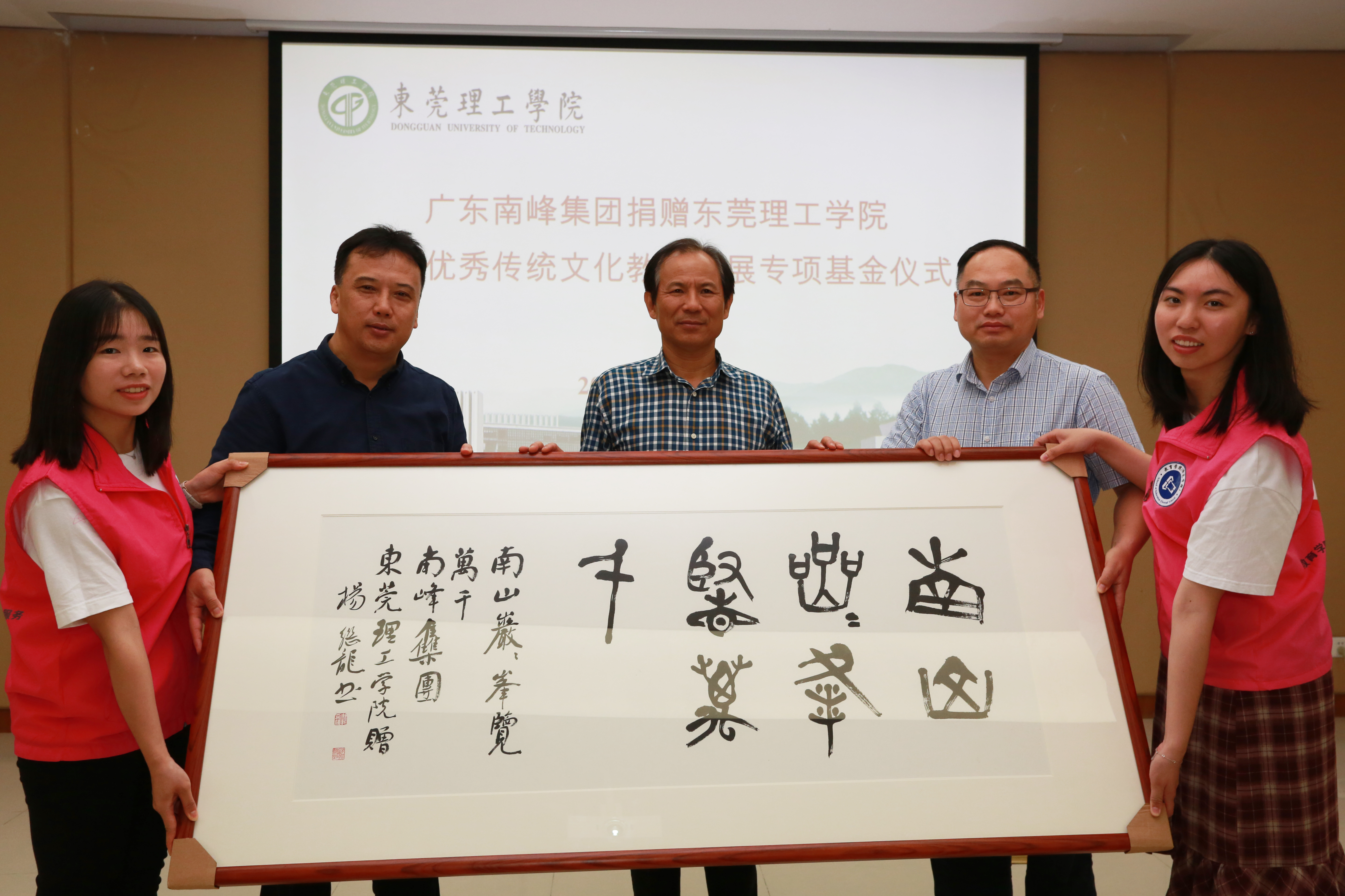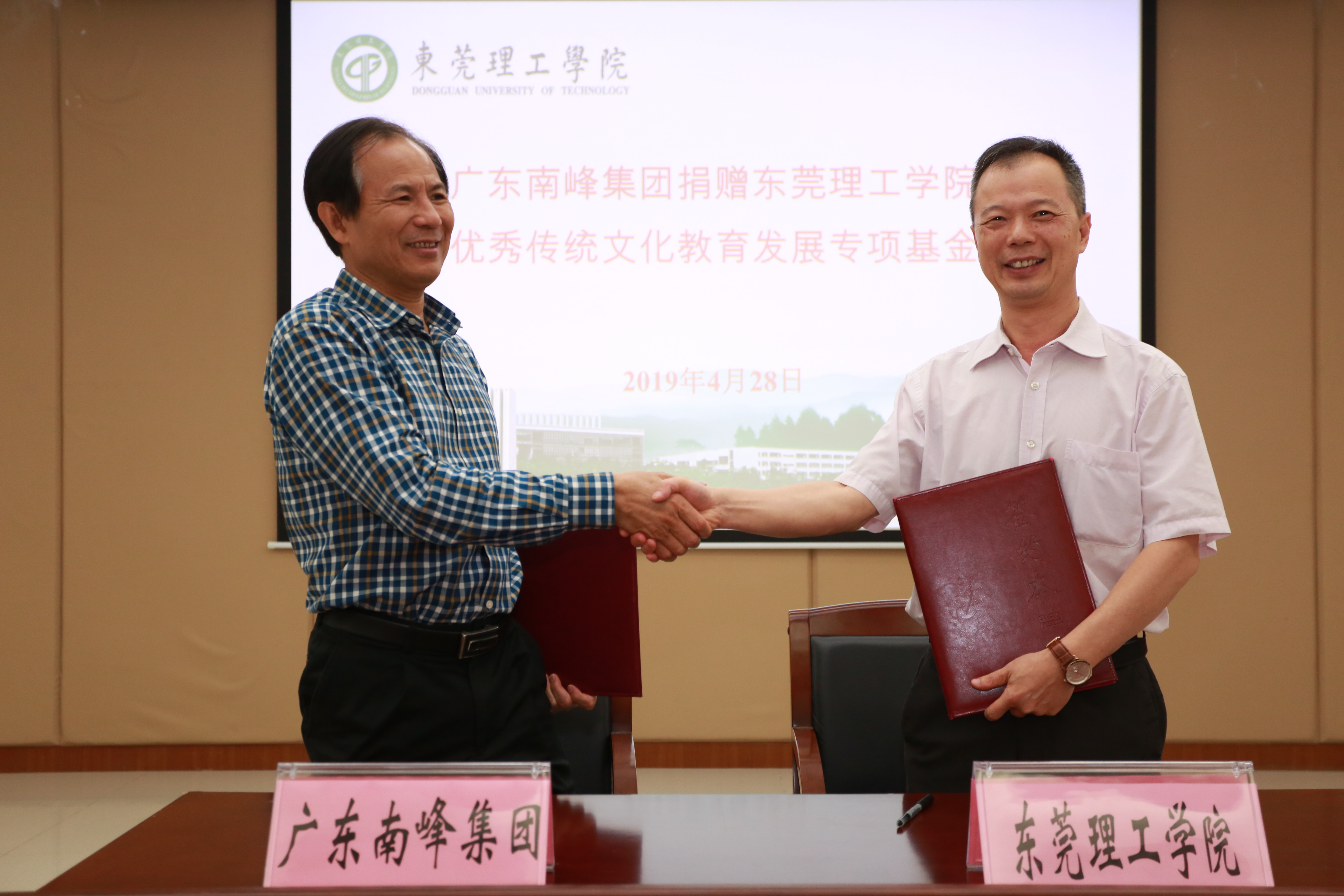 4月28日上午,广东南峰集团捐赠东莞理工学院中华优秀传统文化教育发展专项基金仪式在学校松山湖校区会议中心举行。