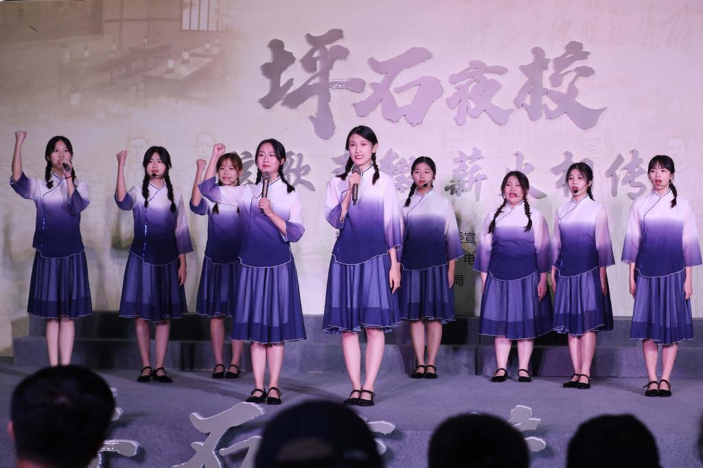 作为“坪石先生”专题展11项配套活动之一,“坪石夜校”大学生演出以华南高校在坪石办学期间师生的校园生活为线索,将展览中坪石先生们的办学、治学、教学生活和当代大学生对华南教育先师的追寻紧密结合起来。经管学子参演的节目有合唱《送别》、小组唱《杜鹃花》、朗诵《我们沿着乌蓝色的江水》、话剧片段《雷雨》,在模拟场景中倾听和讲述“坪石先生”的故事,再现当年坪石丰富的校园生活,共同追忆“坪石岁月”,传承莞邑文脉。