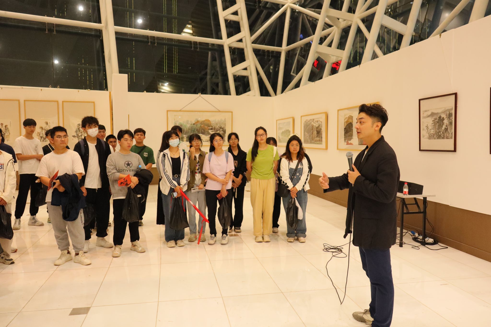 演出结束后,同学们意犹未尽、畅谈感受,20级曾文雄同学表示:“舞剧中武术动作与音乐节奏的融合展现了一种独特的艺术形式,此外,时间线索的设计尤为精妙,除舞剧叶师傅个人经历外,还穿插了剧组人员创作影视作品的时间线”;21级盖梓璇同学表示“作品呈现的故事和表现形式都充满了中国艺术的魅力,这次活动收获满满,仿佛精神世界得到了升华。”22级蔡锦鹏同学感叹道:“中式风格的舞台布景、意义非凡的非物质文化遗产,给我一种视觉和心灵上的双重震撼。”