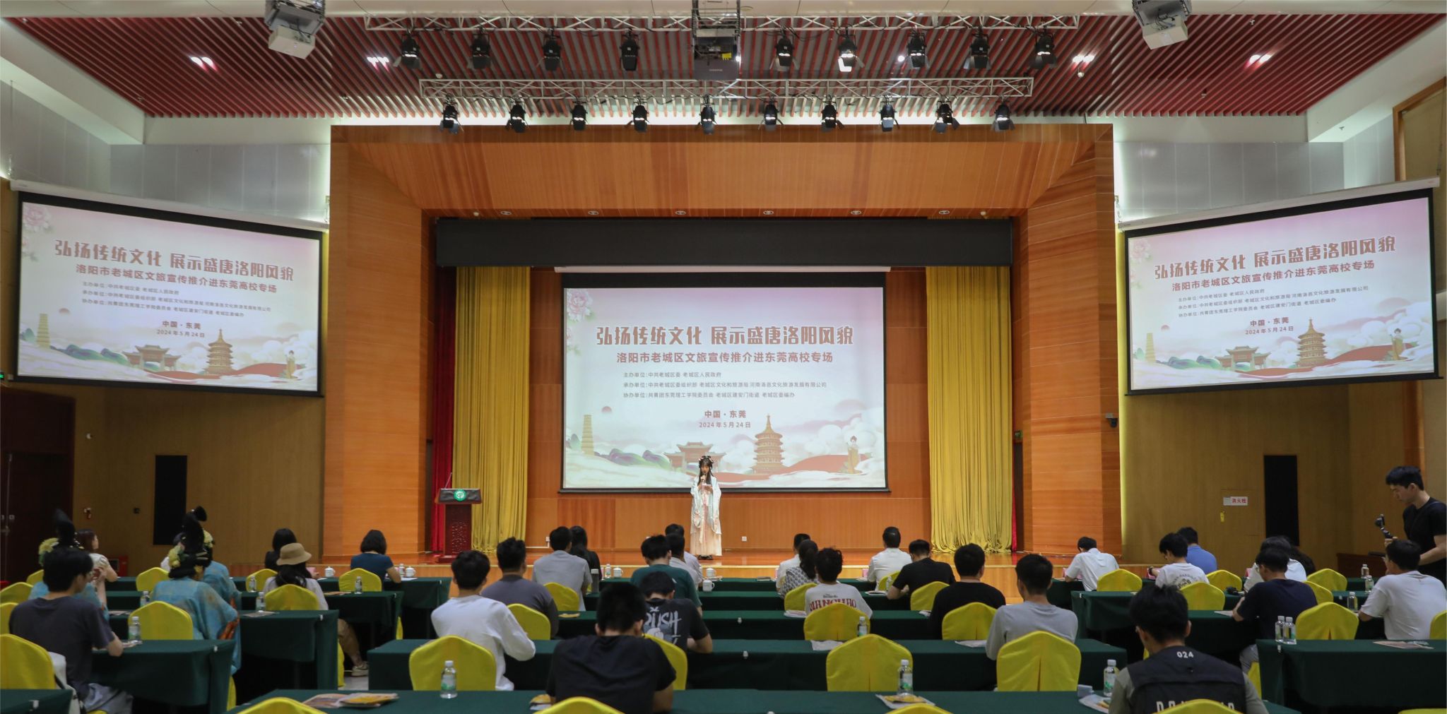 5月24日上午,洛阳市老城区文旅宣传推介进东莞高校专场在学校松山湖校区学术会议中心举行。洛阳市老城区相关部门带着老城区丰富的历史文化遗产和独特的旅游资源走进莞工,向师生展示洛阳盛唐风采,弘扬传统文化。