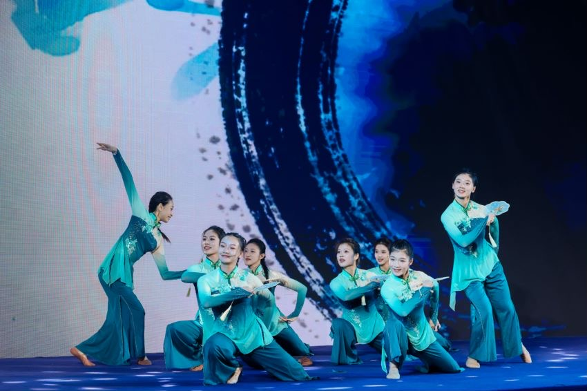 “莞工艺韵”舞蹈团带来的《古典舞·角色塑造》则是用团扇舞蹈体现出中国古典舞的含蓄朦胧以及婉约之美,团扇综合性表演组合中呈现了寻蝶、扑蝶、整妆、嬉戏等情景,运用丰富的团扇舞蹈语言,表演出姑娘的灵动活泼、俏皮可爱的性格特征。团扇代表着团圆友善,吉祥如意,也是对中巴友谊的美好祝愿。