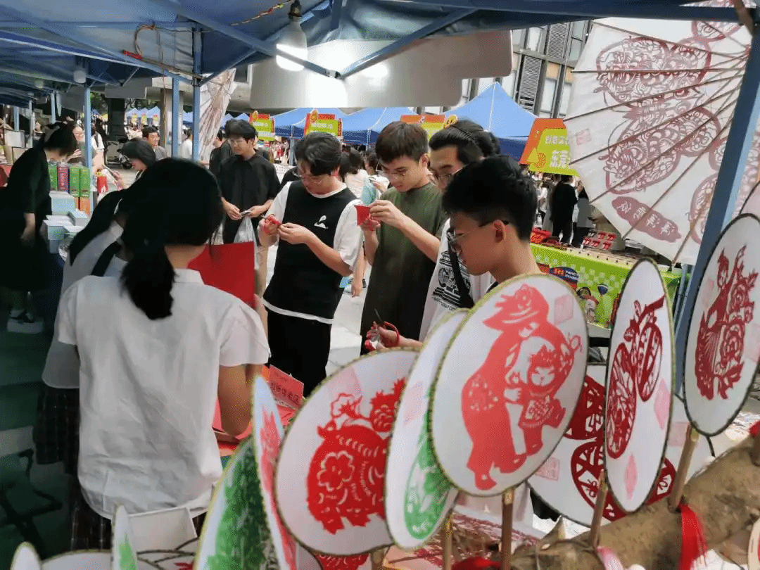 创意市集上,学生体验剪纸艺术