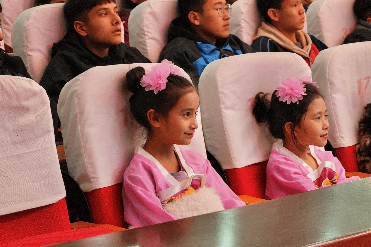 音乐会特别设置了互动环节,主持人邀请两地学生分享对“石榴花开”主题的理解以及新年愿望与期待。大小朋友们在屏幕前积极互动,有的讲述身边民族团结的感人故事,有的畅谈对民族一家亲的深刻感悟,有的表达对家乡、亲人与自己的美好祝愿,民族团结的种子在热烈的交流氛围中生根发芽。