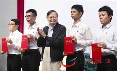 图为2014年6月,杨振宁来莞为学生科研团队颁发奖学金 东莞时报资料图 记者 陈帆 摄