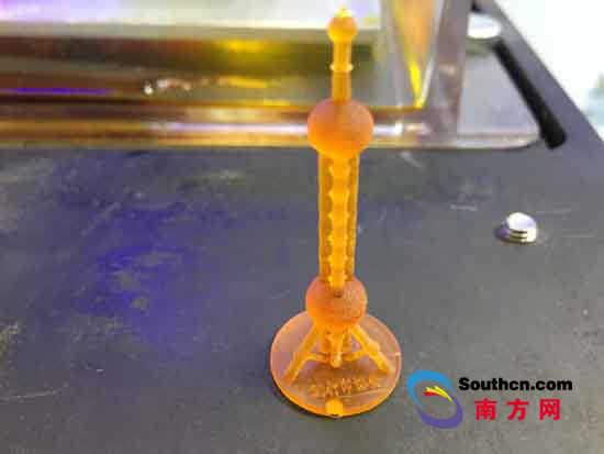 其中,3D打印技术项目占了该展位现场的较大篇幅。DLP光固化3D打印机吸引了不少记者和嘉宾的眼球。据相关负责人介绍,该产品精度可高达0.05毫米,是东莞理工学院一重点实验室研发的新技术。