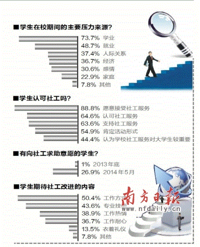 该校学生处处长路晓军说,经过一年的探索,学校的社会工作者做了许多工作,已经初步获得学生的认可。例如,采取专业社工驻点指导等方式,开展学生社区建设宿舍长培训班、助理班主任培训班,以“彩色家园”社区工作和社区建设知识讲座为主要内容,培训大学生2190人次。