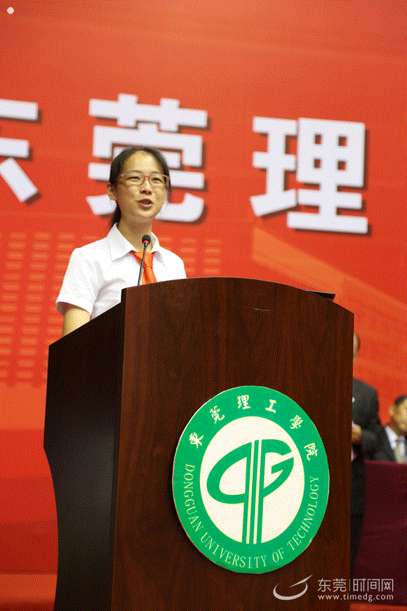 毕业生代表姜兰表示,她为作为东莞理工学院的一员而感到自豪。大二时期,姜兰参加了全省的演讲比赛并拿到了冠军,在最后做一次展示演讲时,她大声地向大家介绍自己是东莞理工学院的参赛选手。