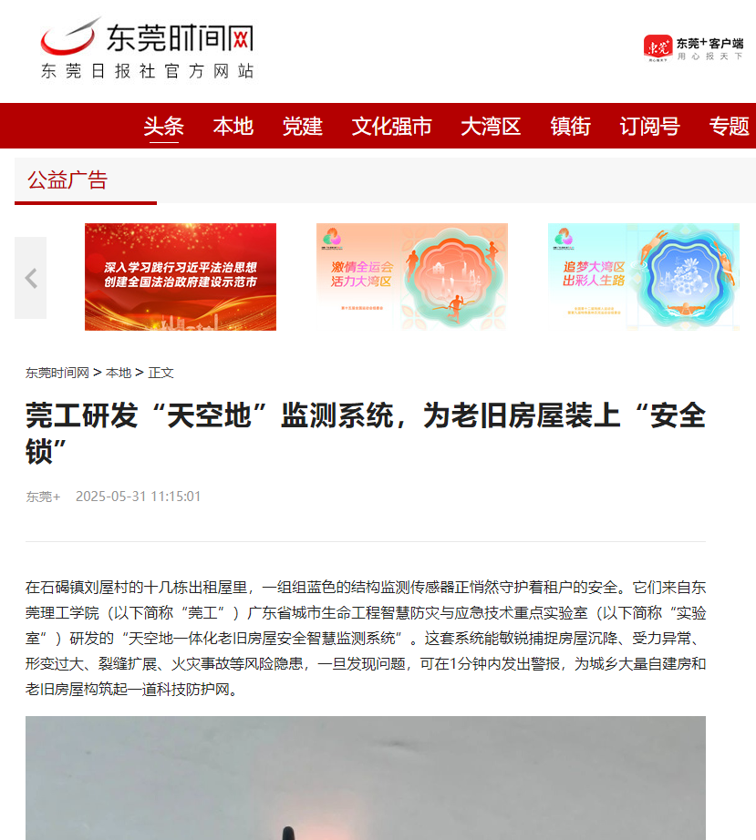 随着“天空地一体化老旧房屋安全智慧监测系统”在石碣镇的深入应用与不断优化,这套由莞工自主研发的“安全锁”正逐步展现其在守护城乡房屋安全、提升基层治理现代化水平上的重要价值。
