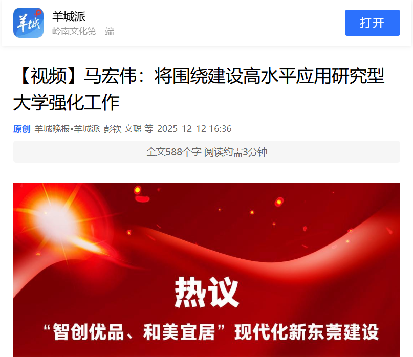 围绕着“产业创新和科技创新”深度融合,学校将聚力建设国家级大学科技园,打造“环东莞理工产业科技创新带”,推动科技成果转化与产业协同创新,为东莞高质量发展注入可持续动能。
