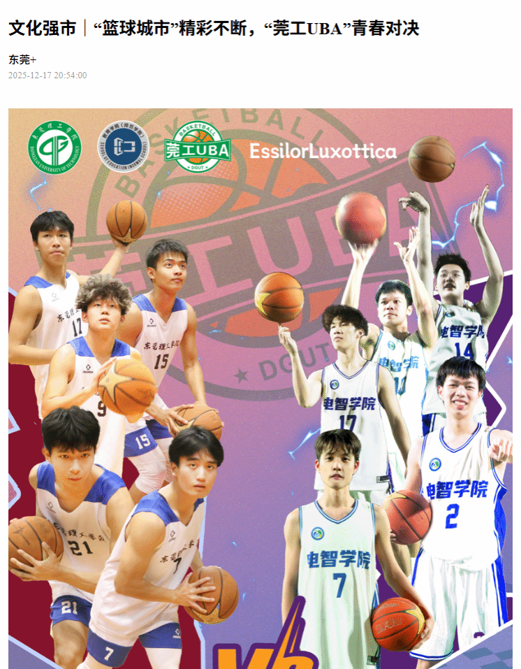 岁末燃点全新期待,东莞篮球“大”有精彩——经过此前连续的激烈对决,以“我有我‘篮’图・莞工 UBA”为口号的“陆逊梯卡华宏杯”东莞理工学院2025年男子篮球联赛总决赛,将于12月18日18:30在东莞理工学院松山湖校区体育馆火热上演。作为“篮球城市”高校领域的标志赛事,全新一季的“莞工UBA”欢呼持续,再度生动呈现着东莞大学生的蓬勃朝气与运动风采。
