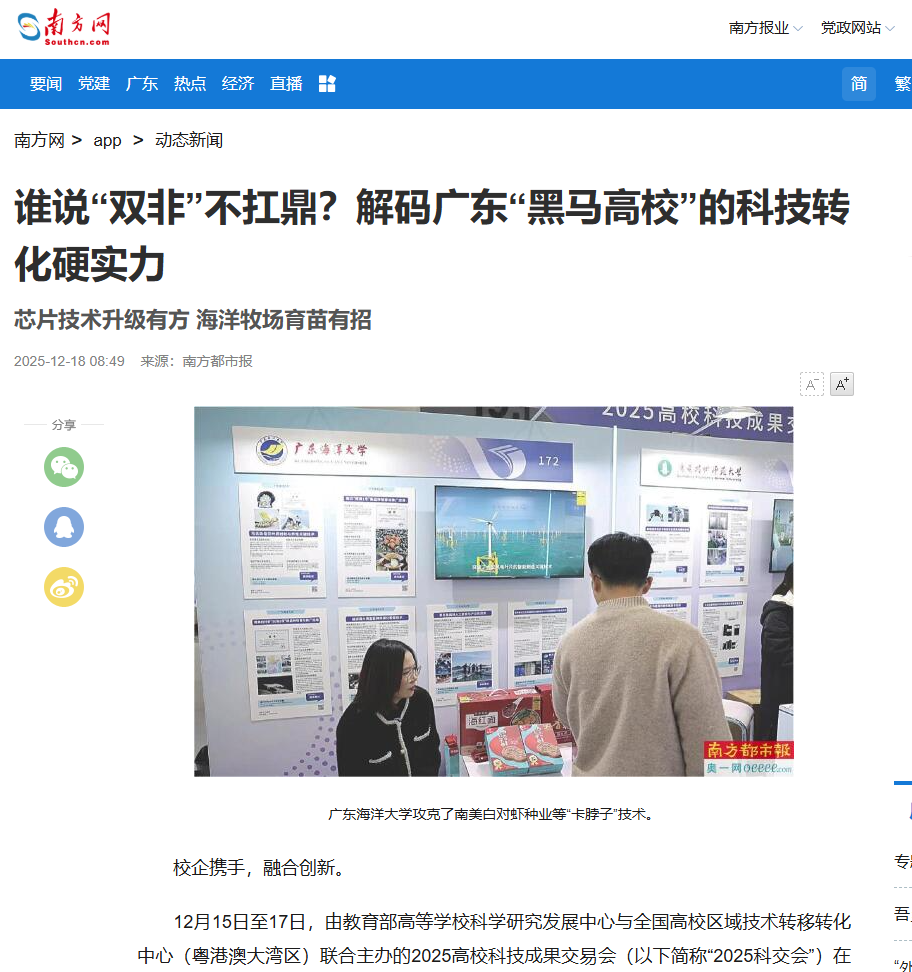 广东高校紧扣区域产业需求,将科研攻关与地方经济发展深度绑定,以“小切口”解决“大问题”,让技术真正“用得上、见效快”。