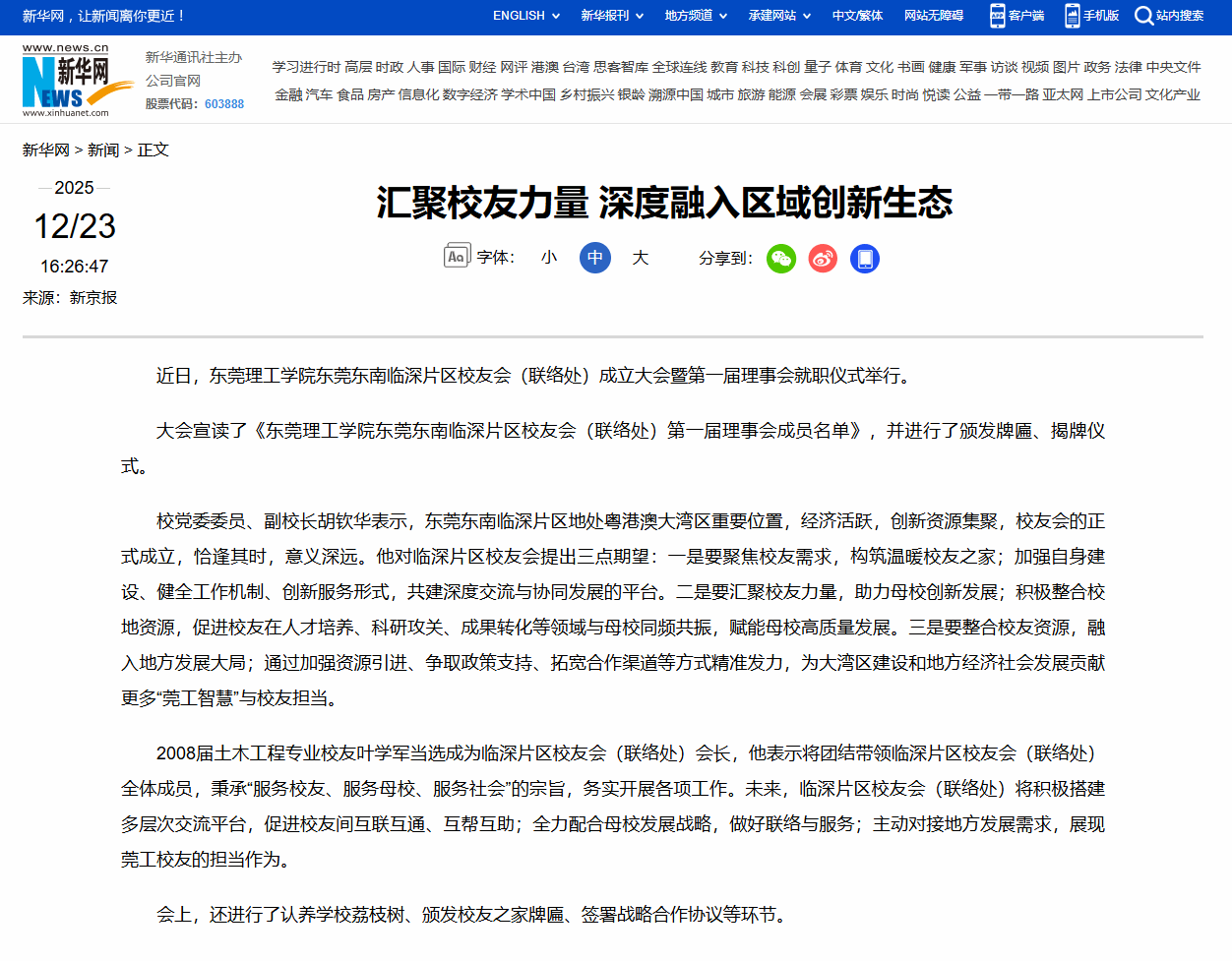 近日,东莞理工学院东莞东南临深片区校友会(联络处)成立大会暨第一届理事会就职仪式举行。