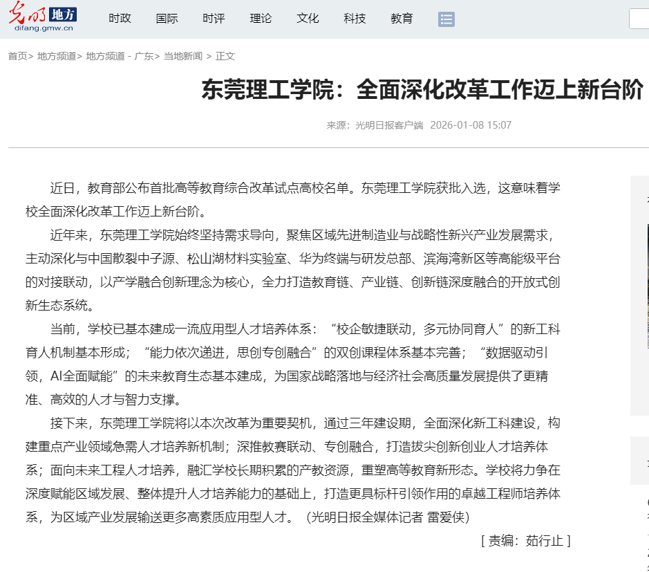 近日,教育部公布首批高等教育综合改革试点高校名单。东莞理工学院获批入选,这意味着学校全面深化改革工作迈上新台阶。