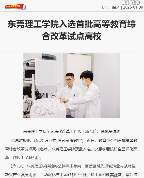 近日,教育部公布首批高等教育综合改革试点高校名单,东莞理工学院获批入选,这意味着该校全面深化改革工作迈上了新台阶。
