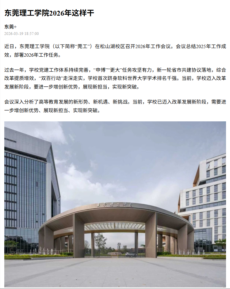 近日,东莞理工学院(以下简称“莞工”)在松山湖校区召开2026年工作会议。会议总结2025年工作成效,部署2026年工作任务。