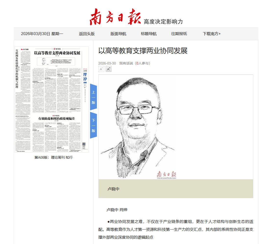 两业深度协同,归根到底取决于教育、科技与人才体系的协同水平。从学科结构的交叉融合,到育人机制的产教协同,从科研创新的全链贯通,到评价制度的系统调整,广东高等教育正在以自身的结构性改革,为两业协同发展提供持续、稳定的支撑条件。面向未来,率先实现高等教育自身的系统性协同,打破两业协同的阻碍,才能以教育供给侧的深度变革成就广东两业协同发展的全新格局,激发起高质量发展的强劲内生动力。