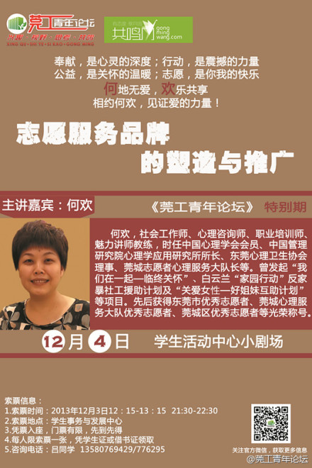 莞工青年论坛第49期——何欢《志愿服务品牌的塑造与推广》