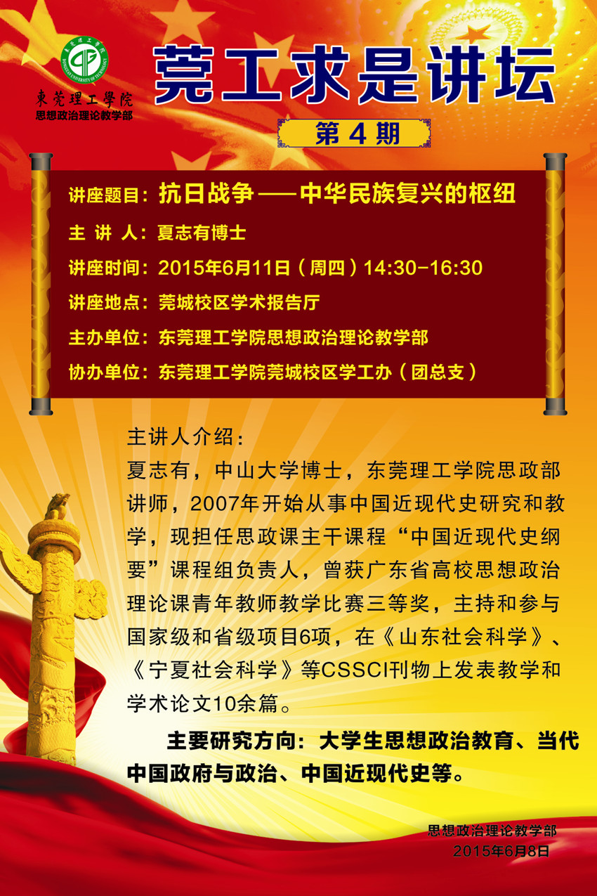 思政部莞工求是讲坛第4期:抗日战争——中华民族伟大复兴的枢纽