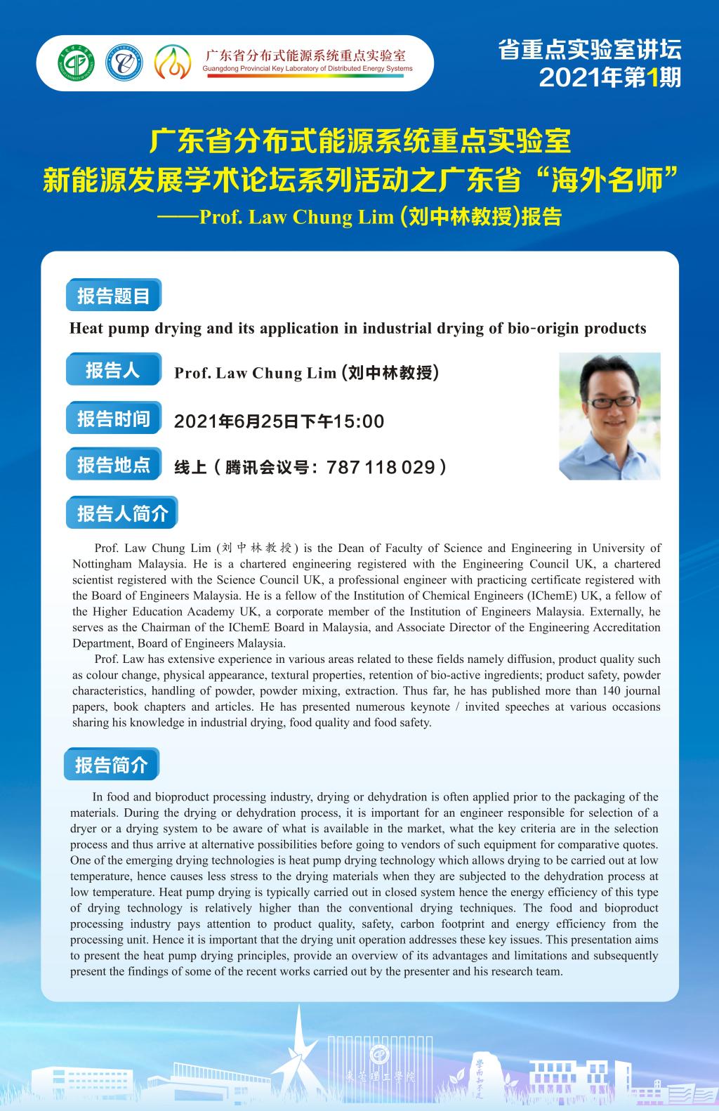 省重点实验室讲坛|2021年第1期:广东省“海外名师”——Prof. Law Chung Lim报告