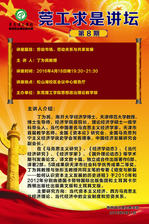 莞工求是讲坛:劳动市场、劳动关系与共享发展