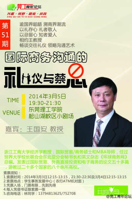 莞工青年论坛第51期——《国际商务沟通的礼仪与禁忌》