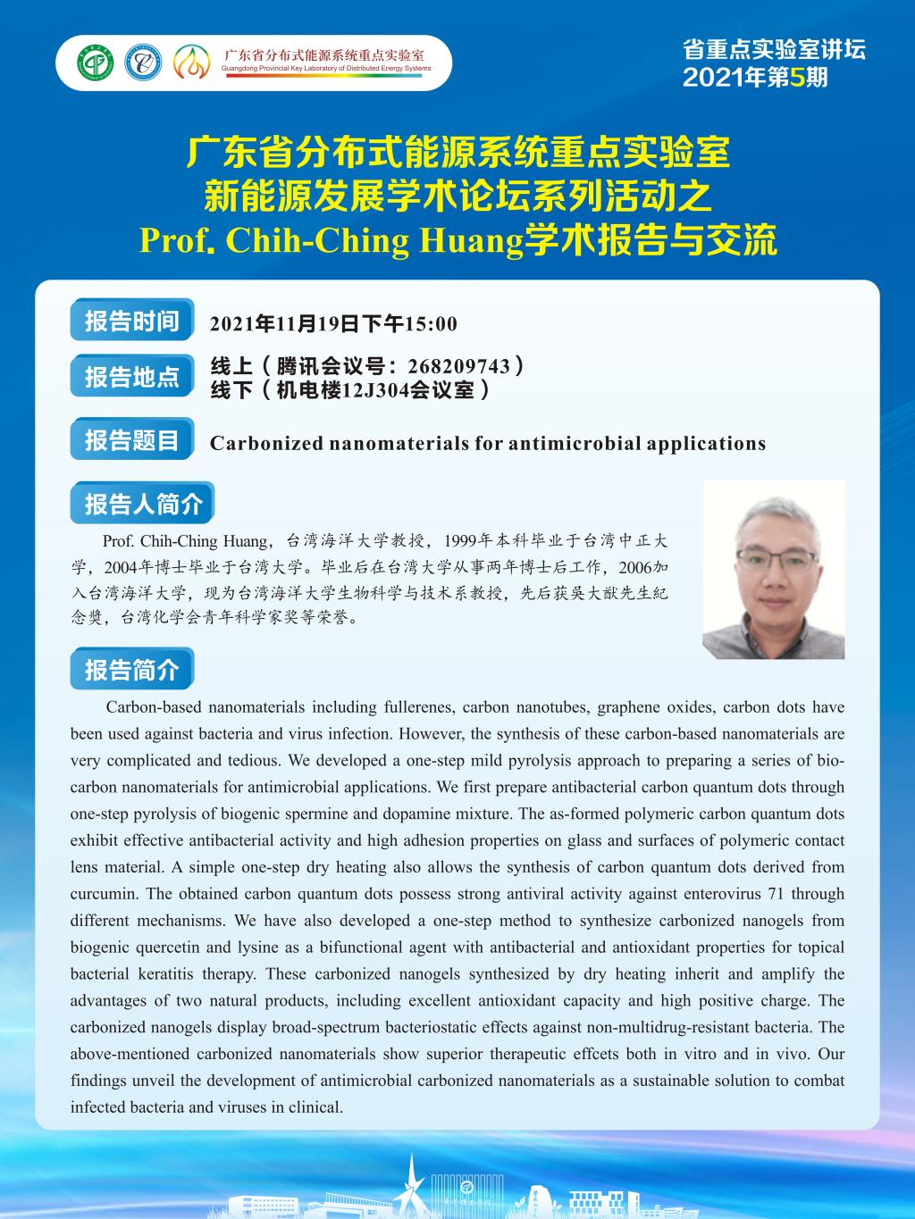 省重点实验室讲坛|2021年第5期:台湾海洋大学Prof. Chih-Ching Huang学术报告与交流