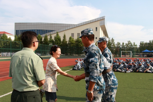 军训现场,我院2018级新生各个精神饱满,充满朝气,在教官的口令下准确完成一个个动作。活动开始,院长郝凌云详细询问了2018级新生的军训强度及适应情况,充分肯定了18级新生不怕艰苦,克服困难的精神。随后,陈智慧书记提出了自己的期望:锻炼体魄,增强自己的意志,要将饱满的热情带入今后的学习生活。