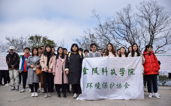 2019年3月10日,金陵科技学院环境保护协会40余人参加了“我爱紫金山”植树节活动。本次“紫金山生态修复”活动在南京“母亲山”紫金山448米主峰进行,各事业单位的志愿者、大中小学生将有机肥、土壤、粉碎的树枝组合在一起,覆盖到水土流失的地方,再种植上野花野草。