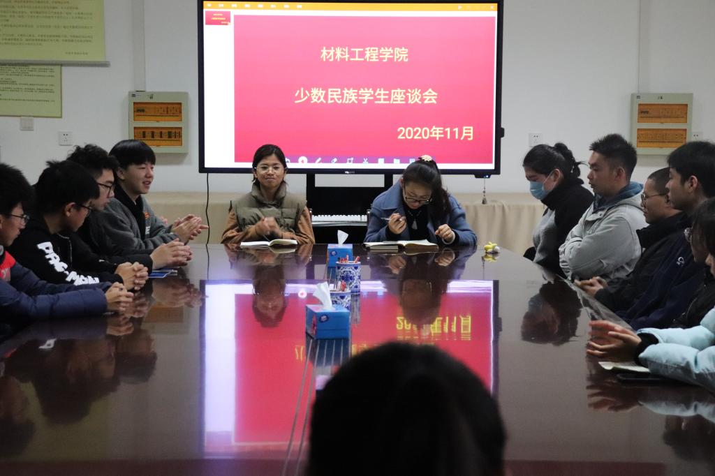 少数民族学生座谈会是材料学院一直坚持开展的活动,是学院响应国家少数民族管理政策,做好少数民族学生管理工作的重要部分。本次会议的开展,为师生深入交流架构了沟通的桥梁,让学院了解并解决学生的困难,让同学获得归属感和幸福感。希望同学们可以更好地融入校园生活,积极参与学校、学院、班级各项活动,合理规划学业与职业发展,学有所成,日后为国家发展、为家乡建设做贡献。(审核人:王亚男)