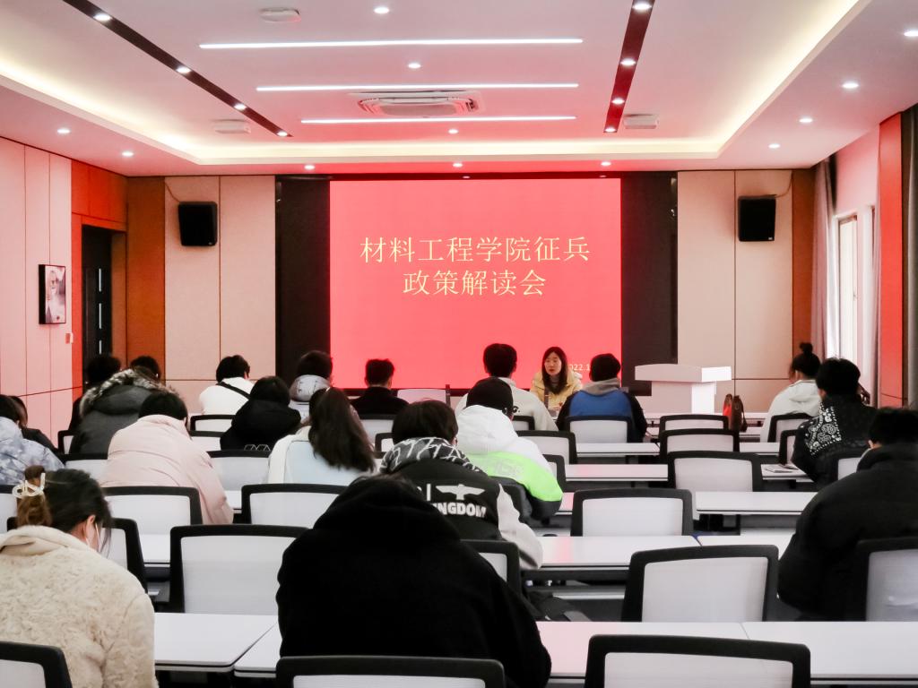 强军战歌风中嘹亮,入伍征兵青春荣光。12月2日,材料工程学院在知行楼A506会议室召开征兵政策解读专题会,材料工程学院辅导员王亚男主持本次会议,材料工程学院各班学生代表参加。