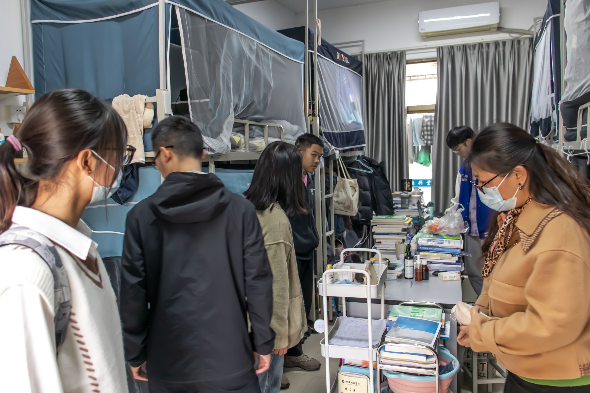 检查过程中,学院领导和老师与同学们进行亲切交谈,询问同学们的学习及生活情况,重点排查宿舍安全隐患,倡导同学们安全用电,杜绝使用违章电器,对个别宿舍卫生状况方面存在的不足提出了改进建议,有针对性的检查了宿舍阳台等容易被忽视的地方,叮嘱同学们要定期开窗通风、加强身体锻炼,做好流感高发期的自我防护。同学们纷纷表示感谢老师的关心与呵护,他们日后会更加注意宿舍卫生,重视宿舍用电安全问题,严格遵守宿舍管理制度。