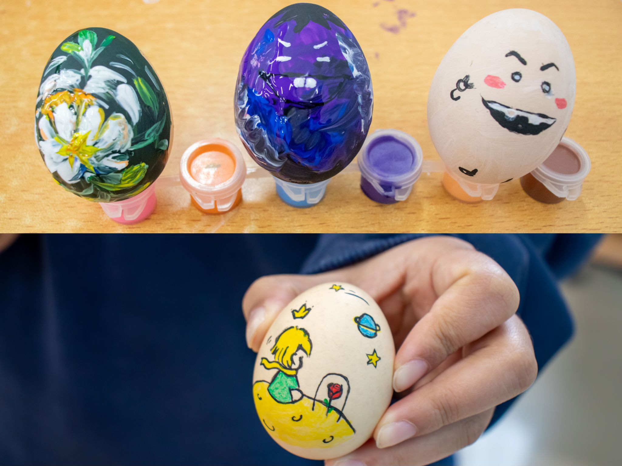 活动伊始,同学们便纷纷动手尝试立蛋,他们或调整鸡蛋的摆放角度,或利用桌面的微小不平来寻找平衡点。经过一番努力,许多同学成功地将鸡蛋稳稳地立在了桌面上,喜悦之情溢于言表。立蛋成功后,同学们拿起画笔,在鸡蛋上描绘出各种图案。有的画出了春天的花朵,有的画出了可爱的小动物,还有的同学将鸡蛋装饰成了五彩斑斓的艺术品,大家充分发挥了动手能力和想象力,将普通的鸡蛋变成了充满个性的作品。最终,19件作品脱颖而出,这不仅展示了同学们的绘画才华,更体现了他们对传统文化的热爱与传承。