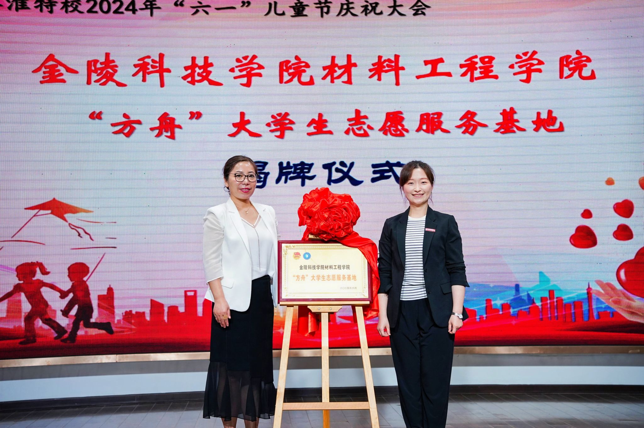 在“六一”儿童节来临之际,5月31日上午,金陵科技学院材料工程学院赴南京市秦淮特殊教育学校参加“六一”文艺汇演并进行“方舟”心育实践基地的揭牌仪式。材料工程学院党委副书记韩铖,学工办主任许倩颖,团总支书记邵云龙,辅导员赵志伟、王敏及“方舟”心理社的志愿者们参加活动。