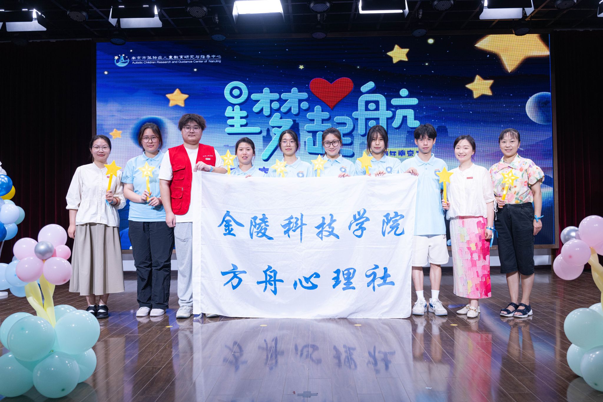 近日,材料工程学院党委副书记韩铖、院办公室主任韩奕、心理健康专项工作辅导员王敏与“方舟”心理社的志愿者们走进秦淮特殊教育学校,参加2024年南京市首届孤独症儿童公益夏令营开营仪式,并开启持续多天的志愿服务。