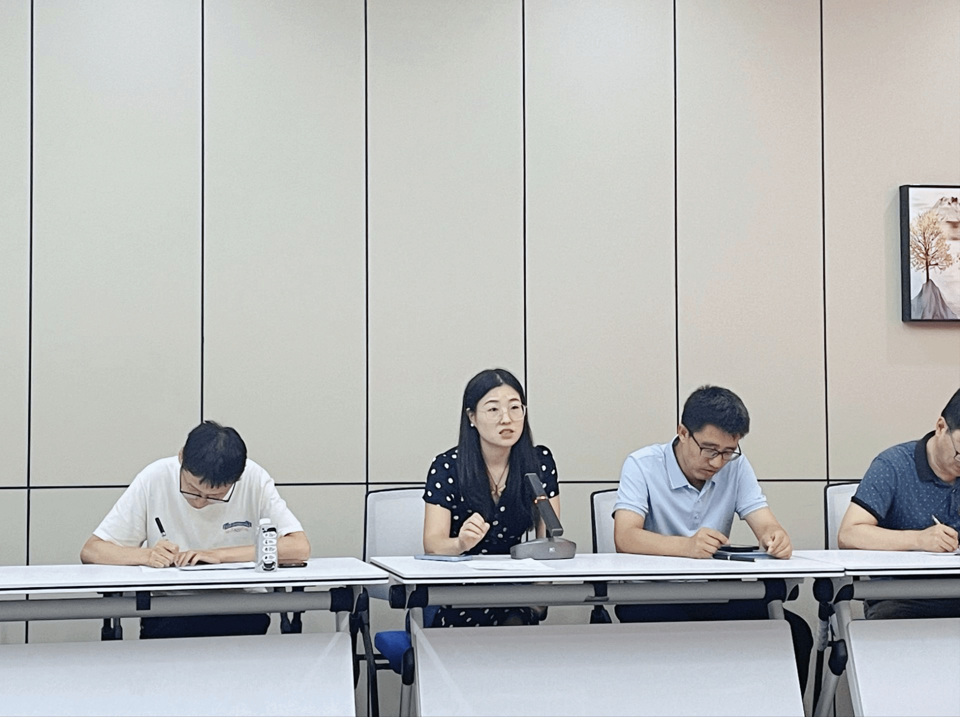 会议首先进行经验分享。欧阳永斌老师围绕班级管理突发事件处理,结合案例讲解预判、应对及沟通技巧,强调“冷静处置、及时上报、多方联动”原则,平时要对学生“多花心思”;姜颖老师聚焦毕业生就创指导,提出建立“一生一档”,联合资源为学生搭建帮扶桥梁,班主任工作的基础就是“对学生好”;胡颖飞老师分享班级学风建设与学生科创培育经验,建议通过“学风监督小组”、“学习互助结对”等营造学习氛围,推动“以学促创”,从“倾听者”的角度做学生的朋友。