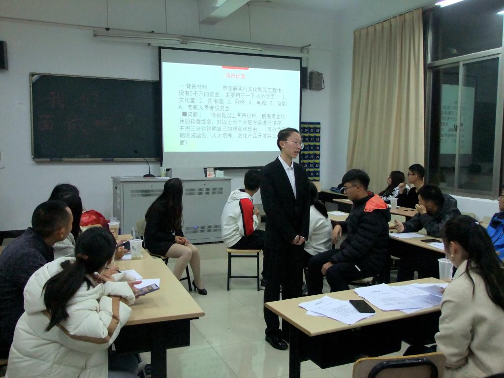 活动伊始,各位选手通过简短的自我介绍向面试官展示自己,随后,选手通过抽签选定面试题目,经简短准备后,现场模拟面试环节,评委们针对选手的回答,提出了中肯的建议。最后,面试者进行情景再现,就自己的工作进行进一步的现场演练,现场气氛十分热烈。经激励比拼,王旖获得第一名,叶紫晴和徐乐乐获得第二名,熊威和张菁获得第三名。
