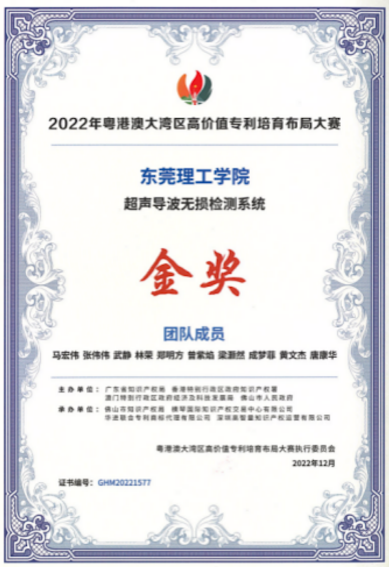 凭借先进的技术成果及广阔的应用前景,马宏伟教授团队荣获2022年粤港澳大湾区高价值专利培育布局大赛金奖及第七届中国创新挑战赛卓越奖等。