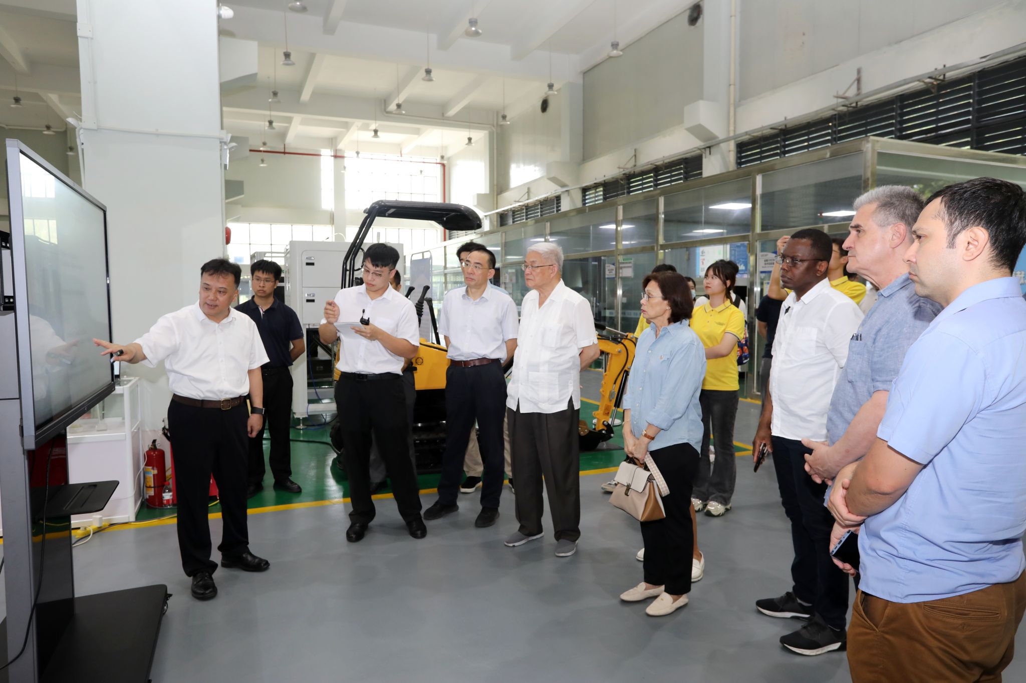 6月29日下午,拉美国家驻华大使馆官员、驻穗总领事馆官员、拉美青年外交官等外宾到访我校,参观考察数字装备工程训练中心。马宏伟向嘉宾介绍学校新型高水平理工科大学建设情况,重点介绍近年来学校在人才培养、学术研究、产教融合等方面成果。